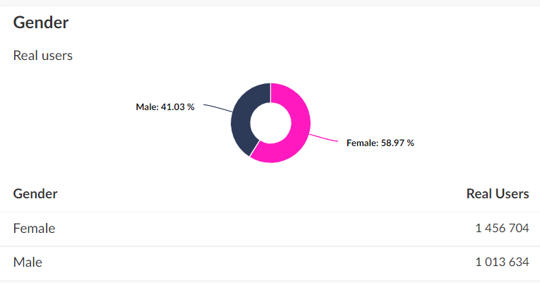 The lidl.pl website was ranked sixth on the list. Website presenting the current offer of Lidl stores as well as current and future promotions also offer online shopping in the following categories, among others such as fashion, sports, home, kitchen, workshop or child. As in the case of previously analyzed websites, the greatest popularity of this website can be observed on Black Friday (over 1.1 million real users). Women predominated among customers (almost 60% of all users).