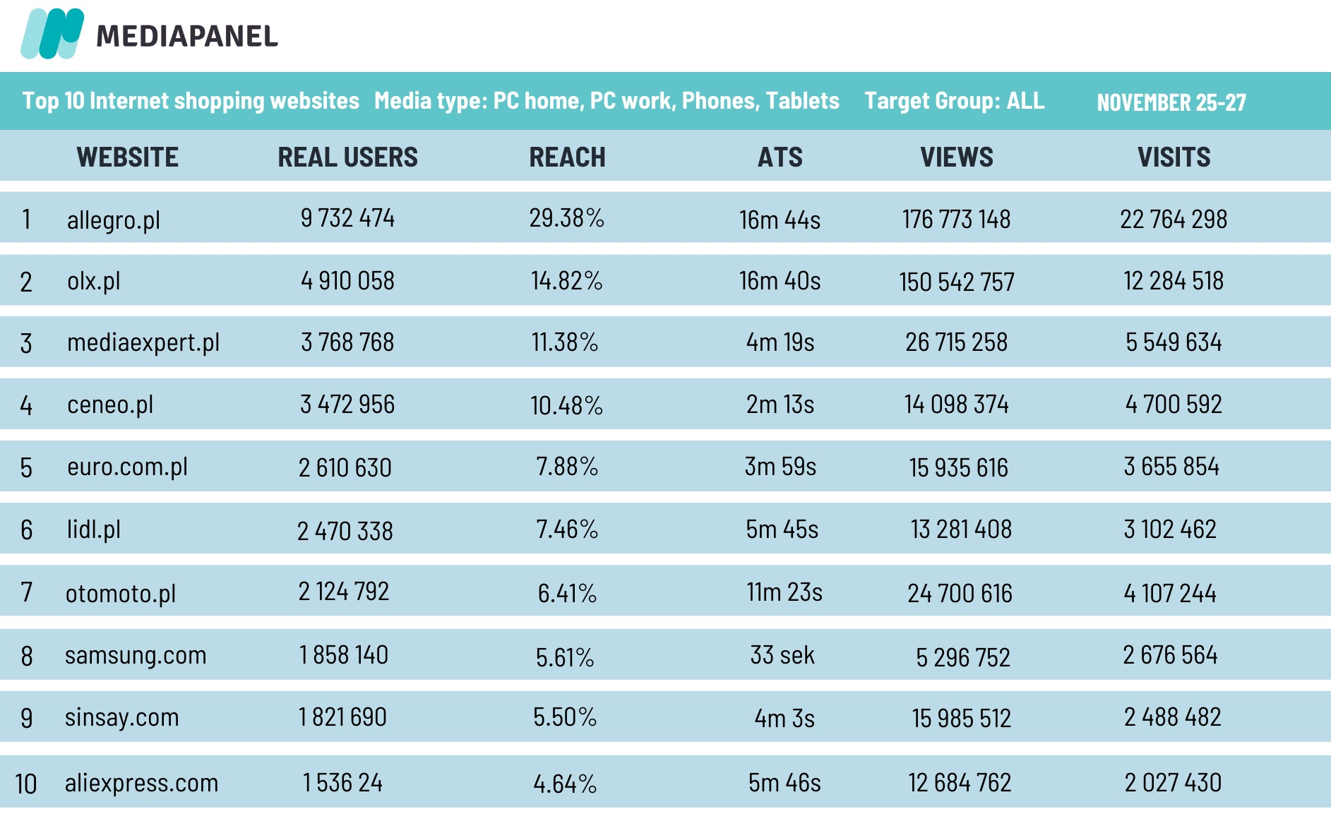 Source: Mediapanel, November 25-27, mediaexpert.pl, Media Type: PC home, PC work, Phones, Tablets, TG: ALL