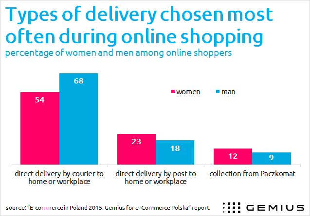 The Gemius survey also showed that men opt for delivery of goods to their home or workplace by courier much more often than women do. On the other hand, women choose direct postal delivery slightly more often than men.