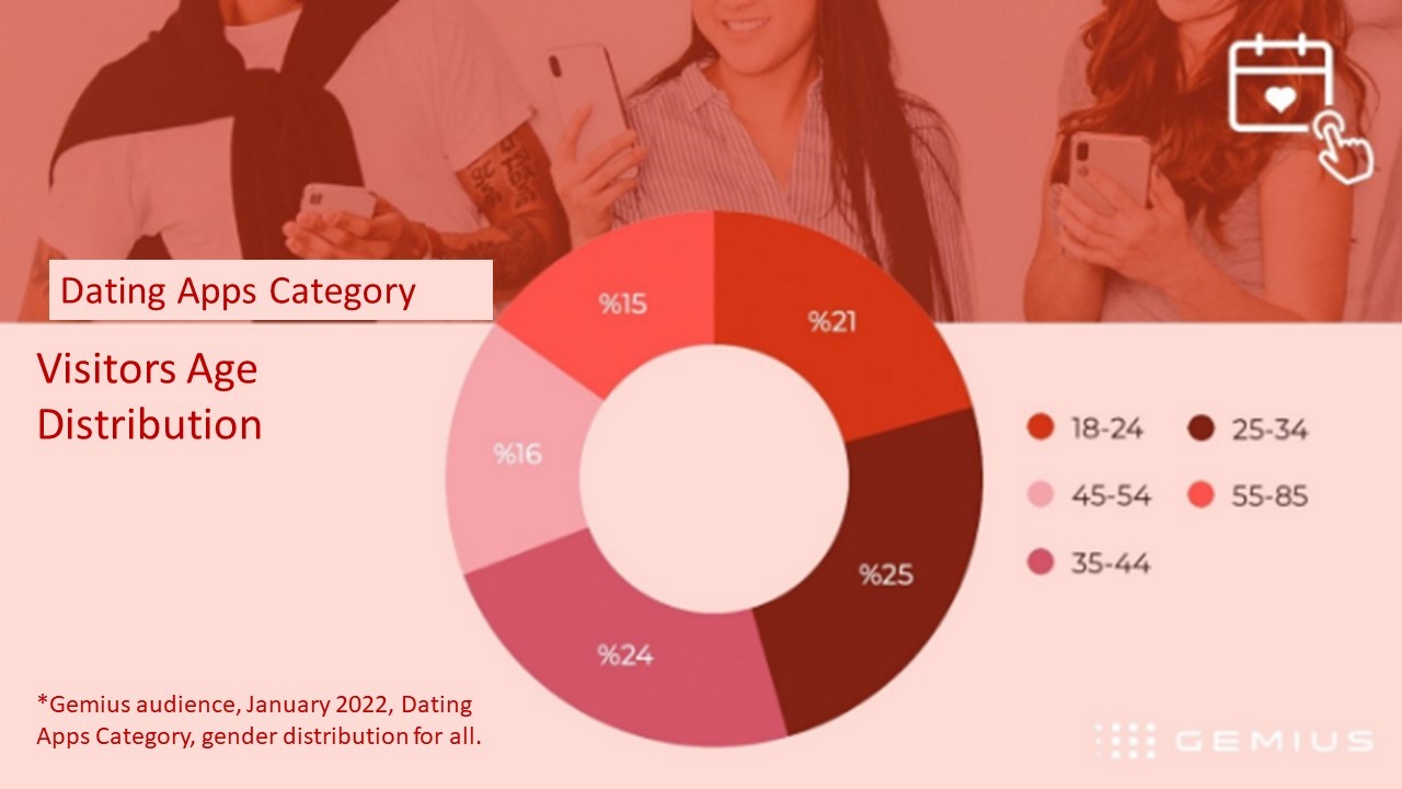According to Gemius Audience's data covering January 2022, the number of users of private dating applications exceeded 7.4 million. In other words, 12 out of every 100 people who used the internet in Turkey could not take their eyes off Dating Apps in January. According to Gemius Audience's data, most of private dating applications users are between 18-44. It is seen that those in the 25-34 age range are ahead of the others.