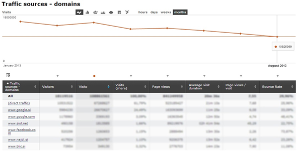 As a result of internal and external promotion campaigns, the traffic from particular referrer domains to TSmedia’s sites has doubled over a period of 6 months.