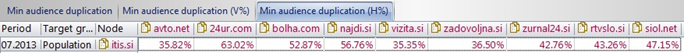 The most effective self-promotional activities are based on knowledge of where to find a target audience which is not yet visiting a certain portal. In this case, gemiusPrism provided a duplication report across TSmedia websites. It turns out that the itis.si and bizi.si websites hold the majority of unique visitors from which traffic can be generated. Therefore, bizi.si was chosen to run self-promotion for najdi.si.