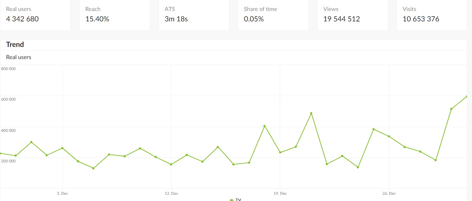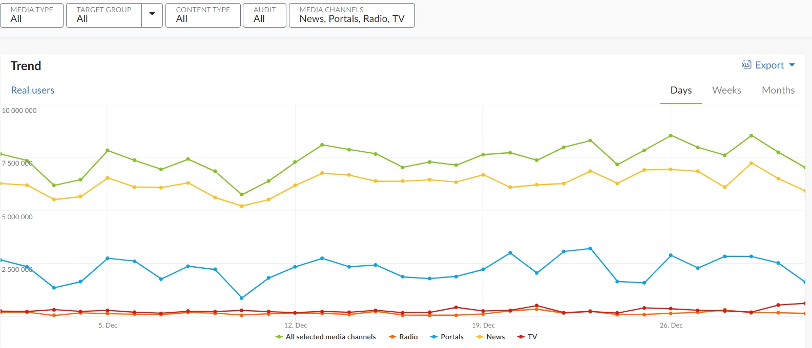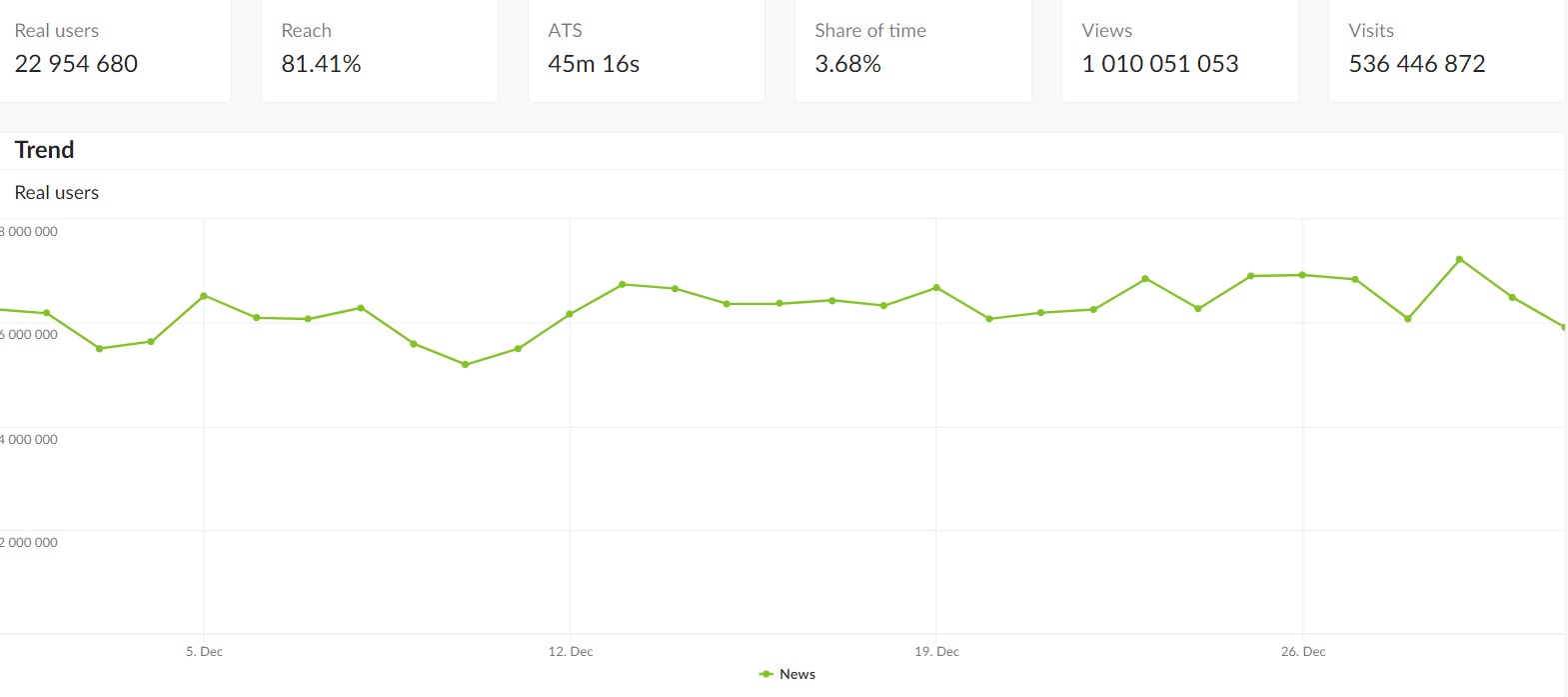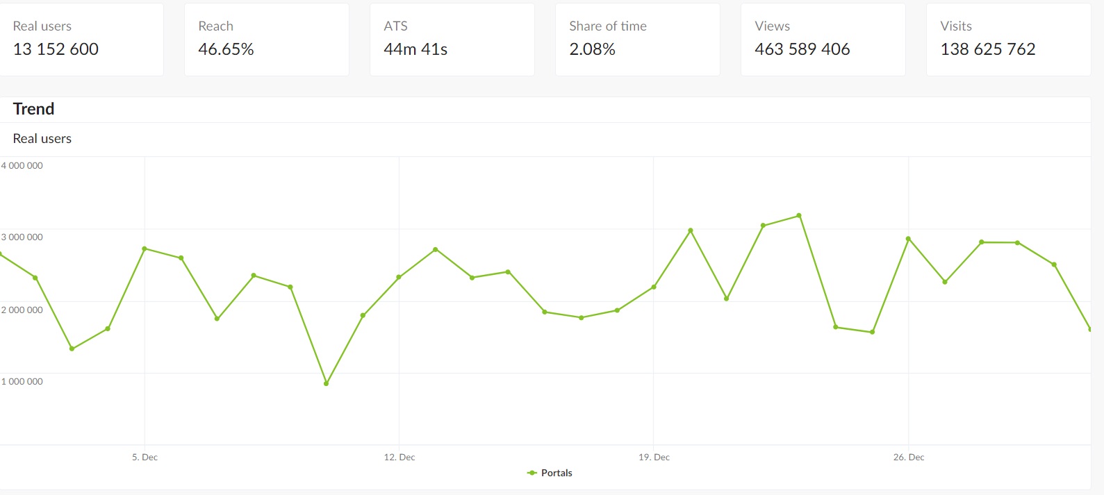 Source: gemiusAudience, Trend, December 1 – 31, 2022,Media Type: ALL, Media Channel: News, Portals, TV, Radio, Target Group: ALL
