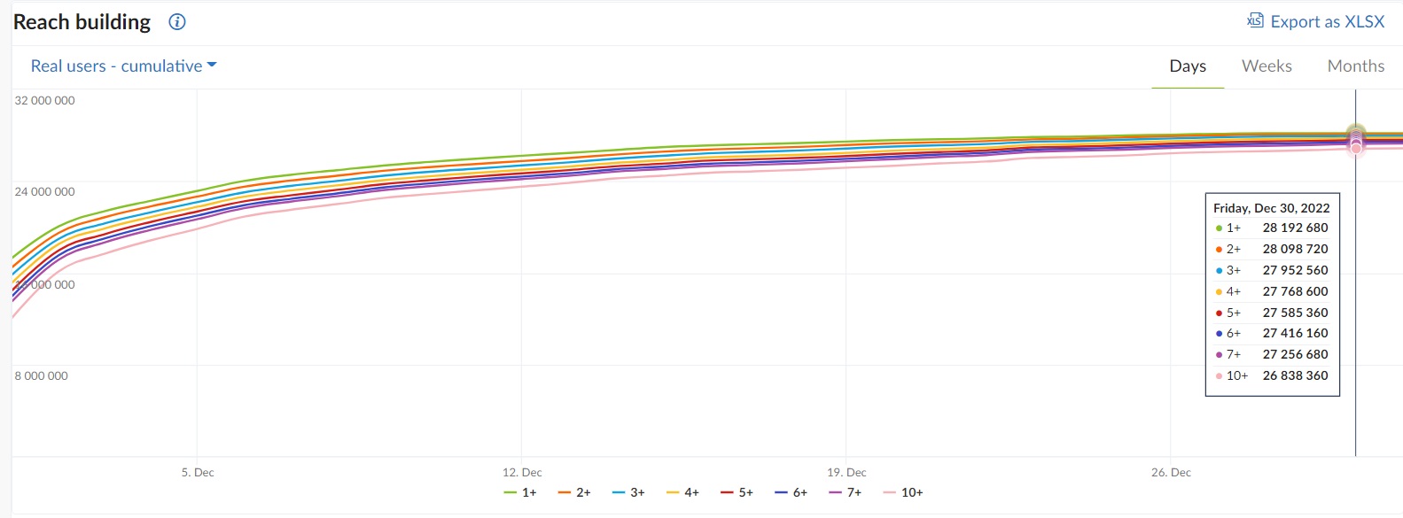 Source: gemiusAudience, Reach building, Real Users (cumulative), December 1 – 31, 2022, Media Type: ALL, Target Group: ALL