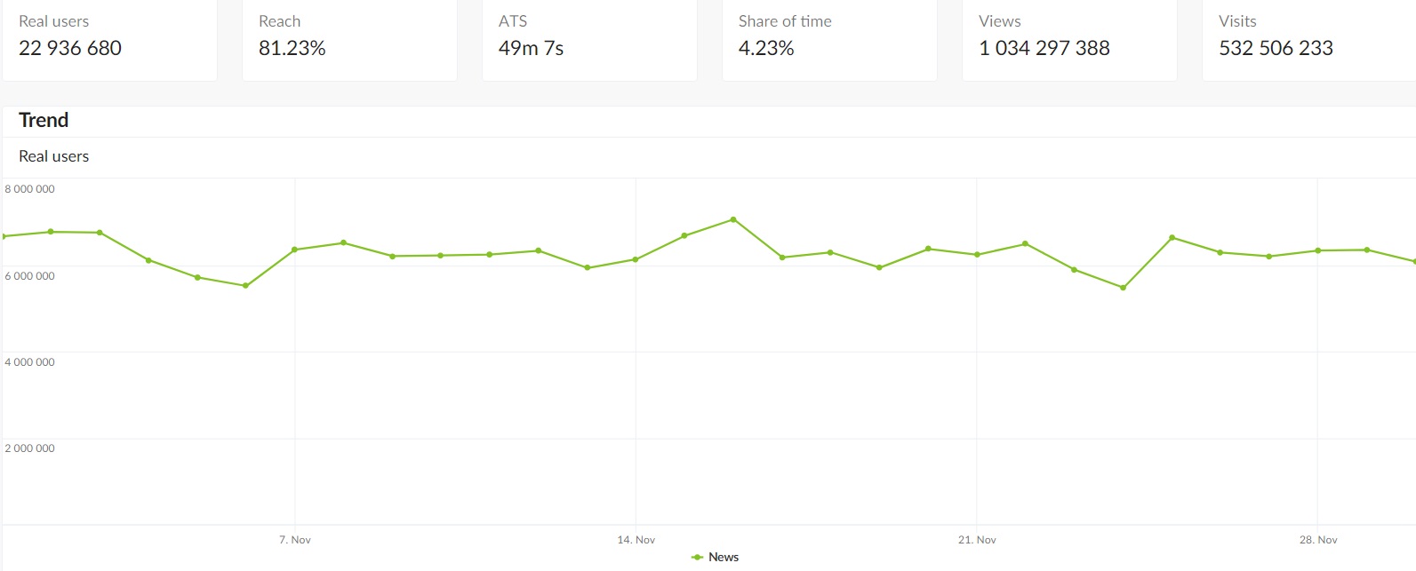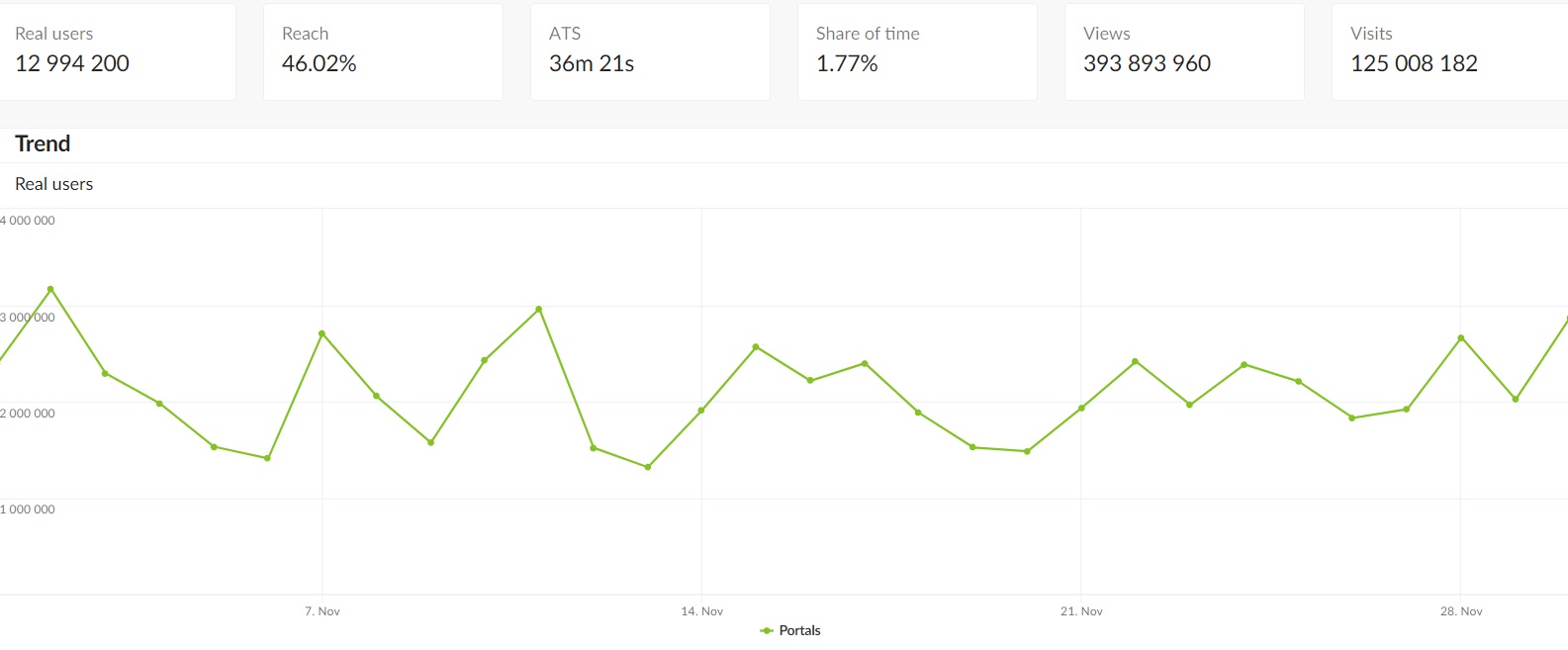 Source: gemiusAudience, Trend, November 1 – 30, 2022,Media Type: ALL, Media Channel: News, Portals, TV, Radio, Target Group: ALL