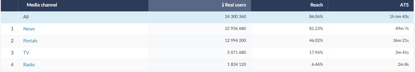 *ATS - Average Time Spent; average duration of exposure to the media of the person in its audience
