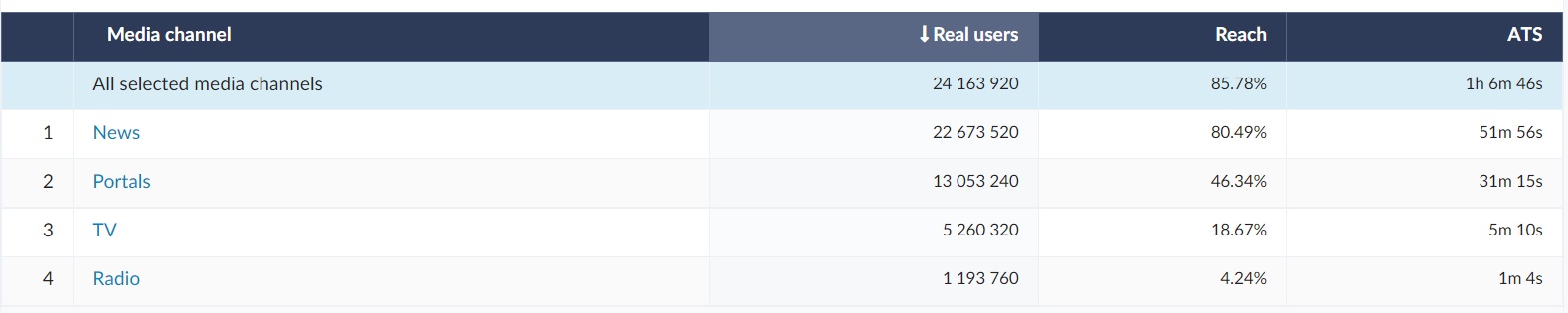 *ATS - Average Time Spent; average duration of exposure to the media of the person in its audience