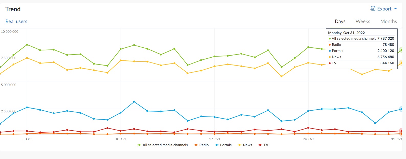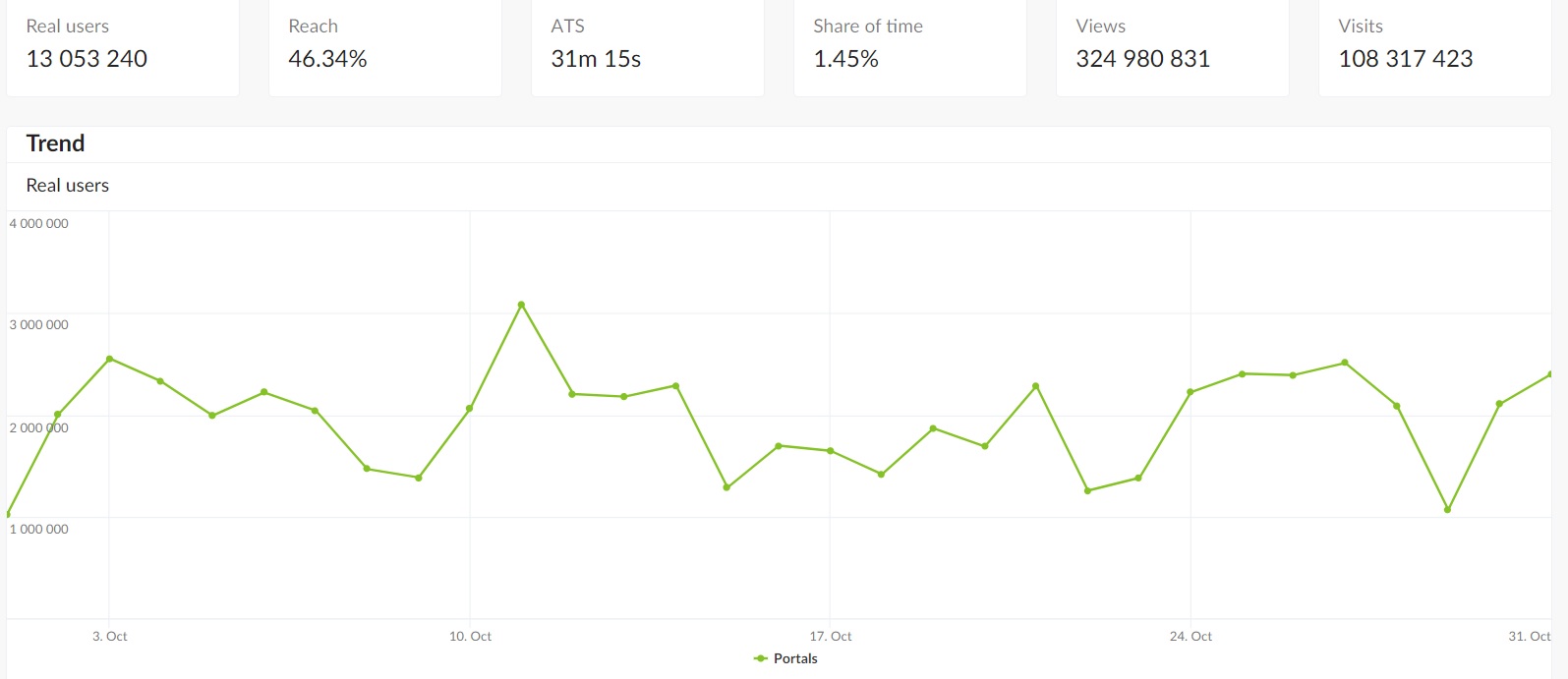 Source: gemiusAudience, Trend, October 1 – 31, 2022,Media Type: ALL, Media Channel: News, Portals, TV, Radio, Target Group: ALL