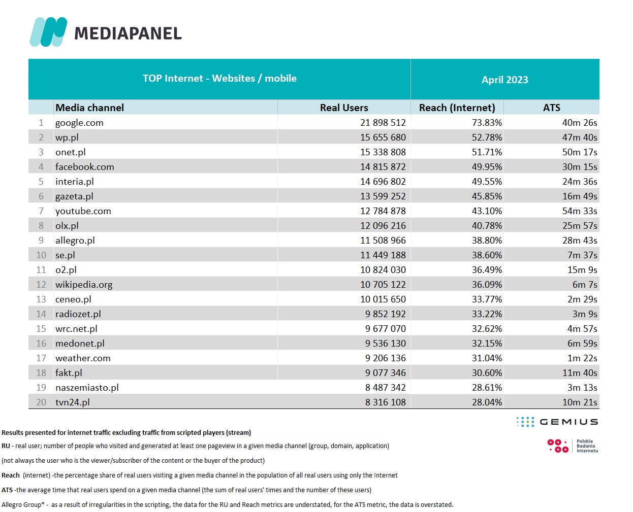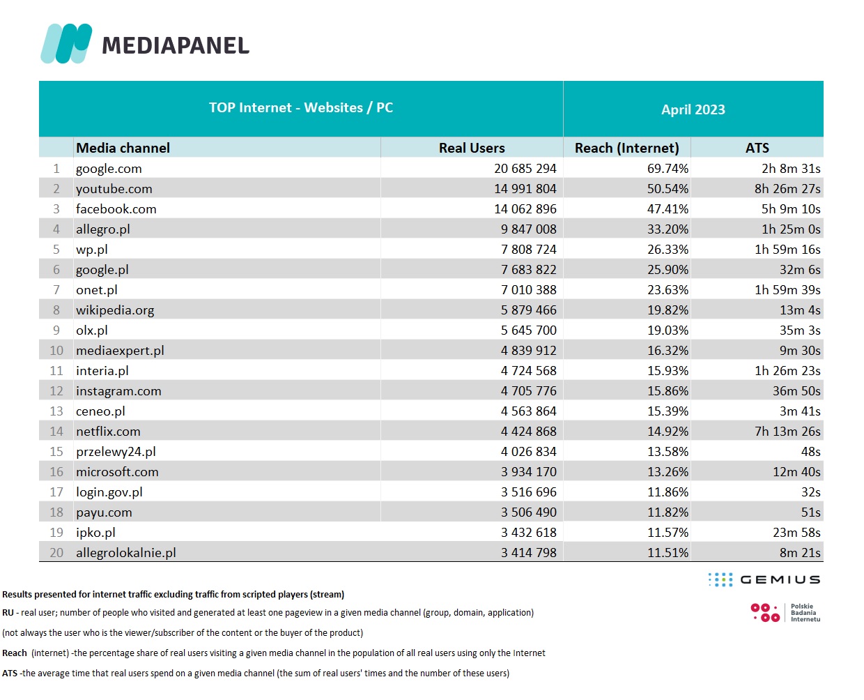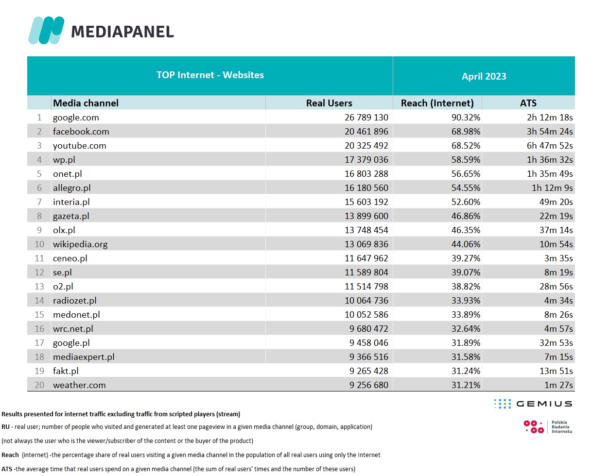 For countries other than Poland, click here and read more about gemiusAudience Research.