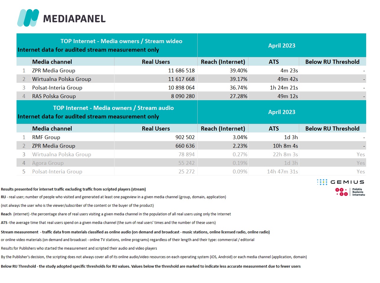 Mediapanel study results for April 2023