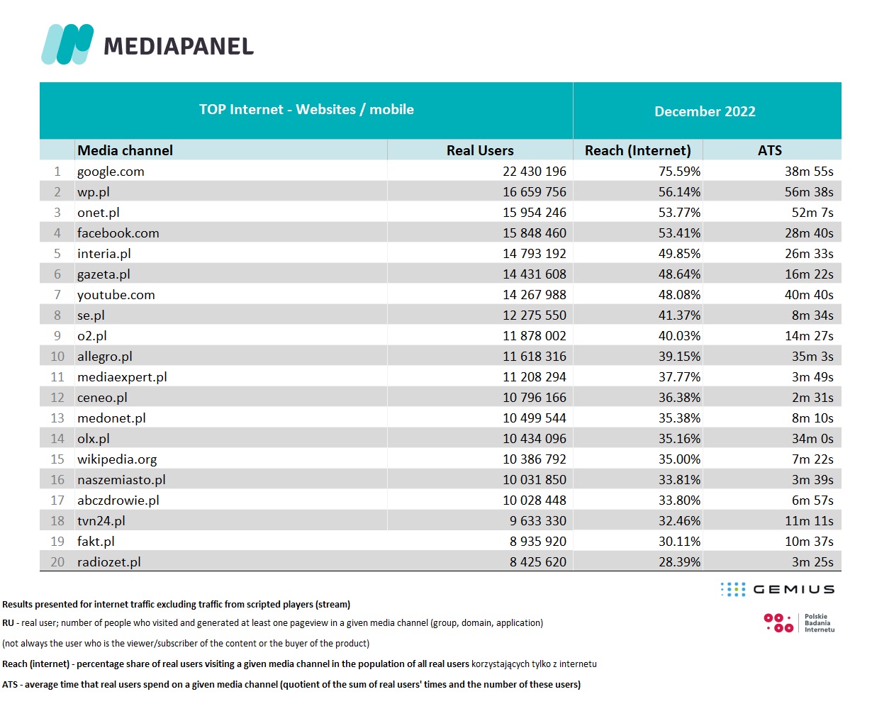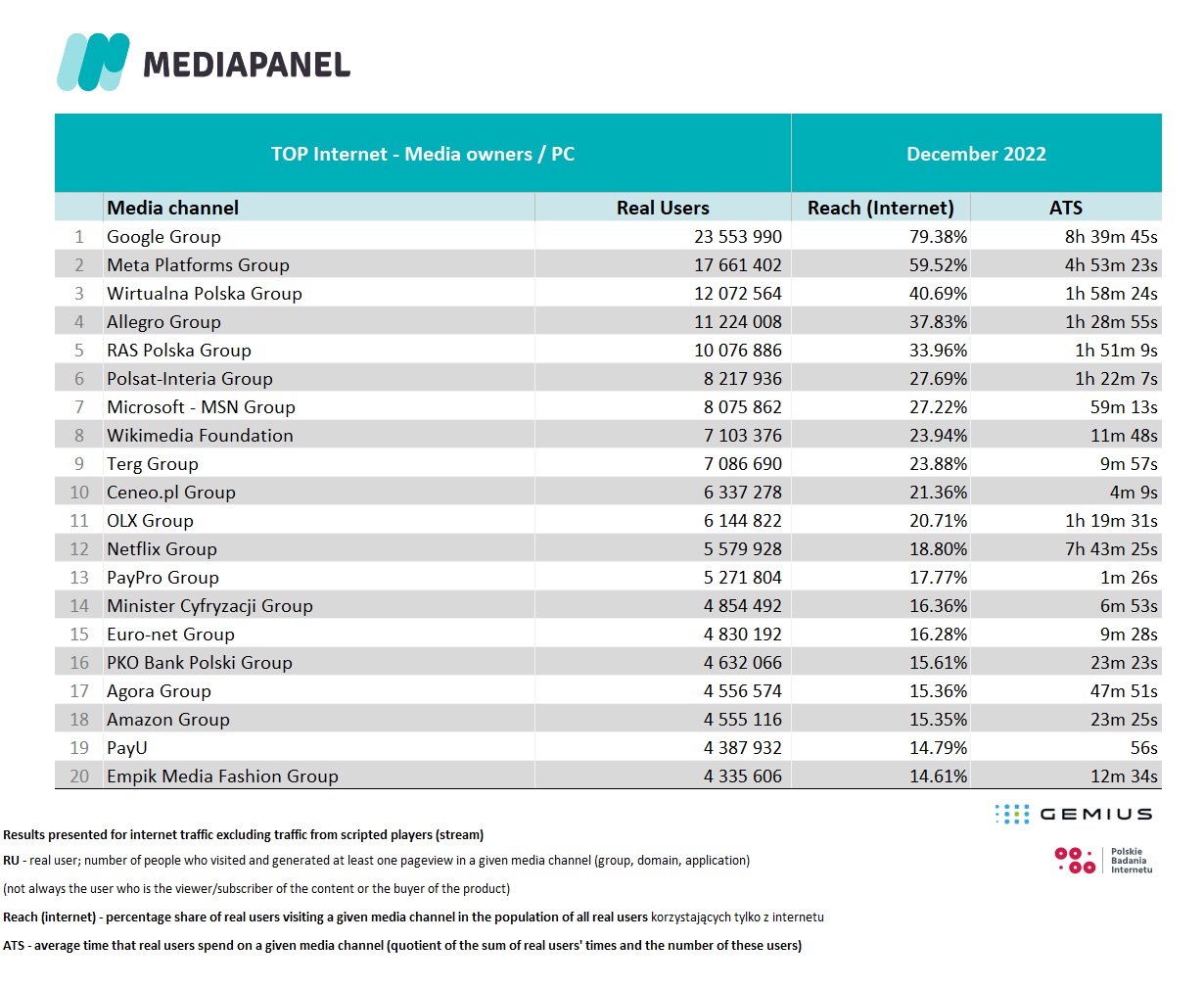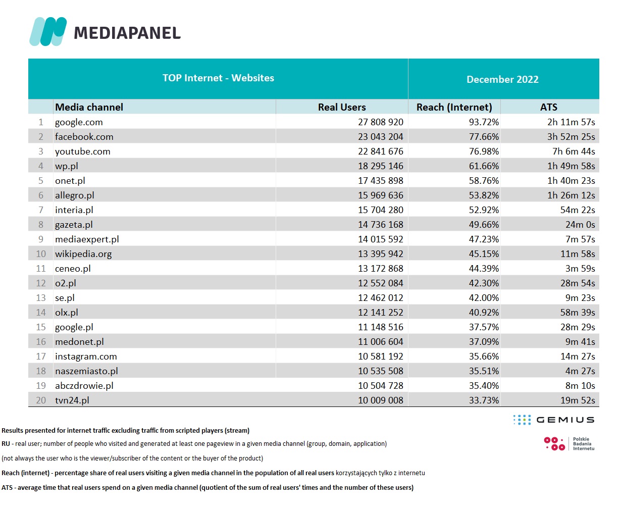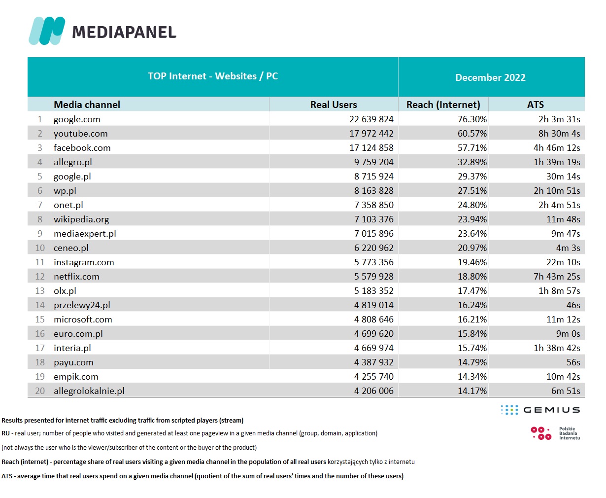 For countries other than Poland, click here and read more about gemiusAudience Research.
