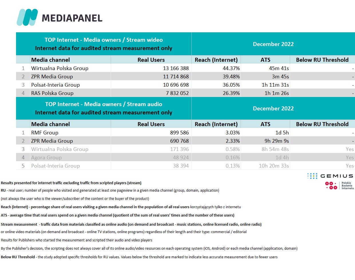 Mediapanel study results for December 2022