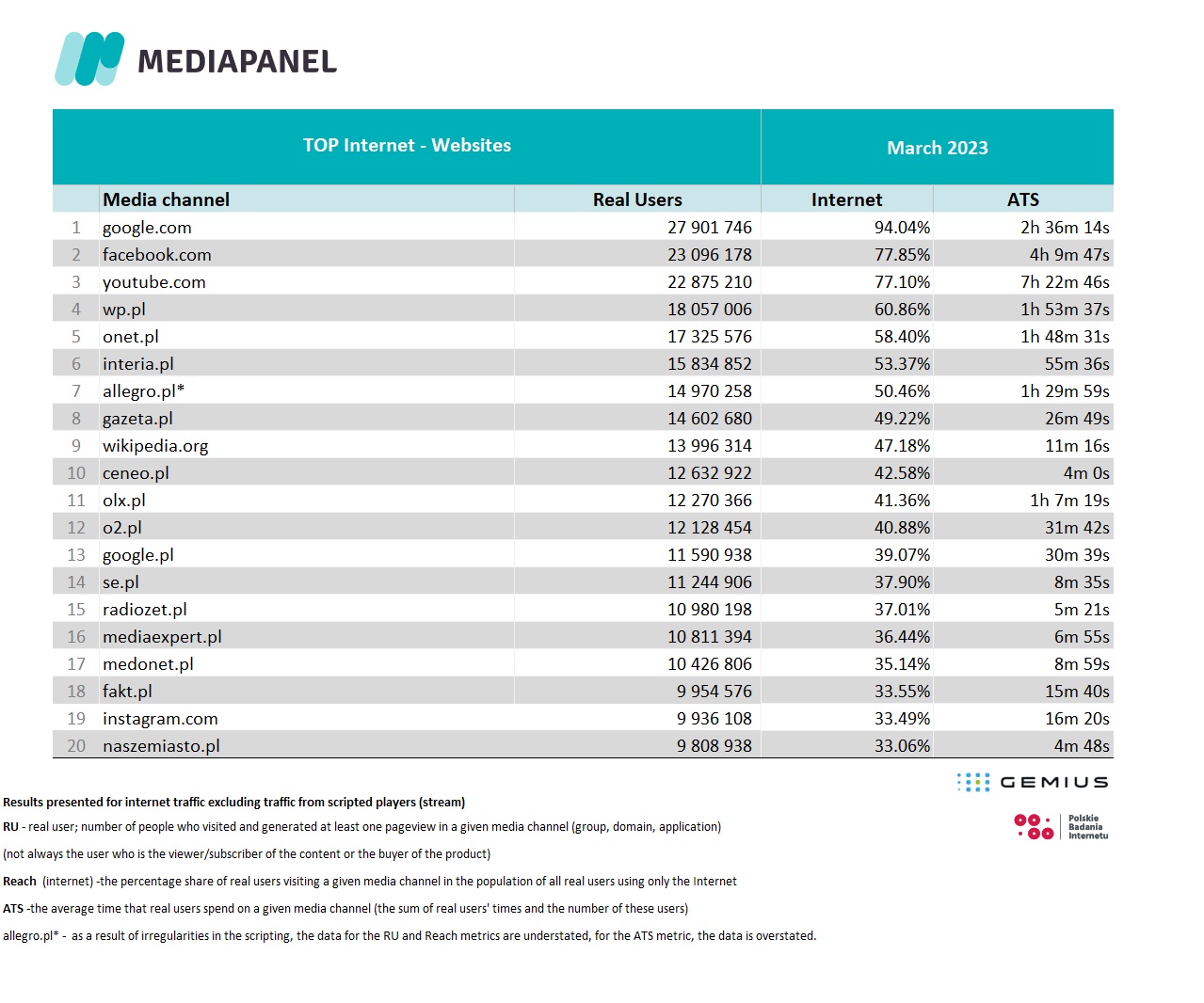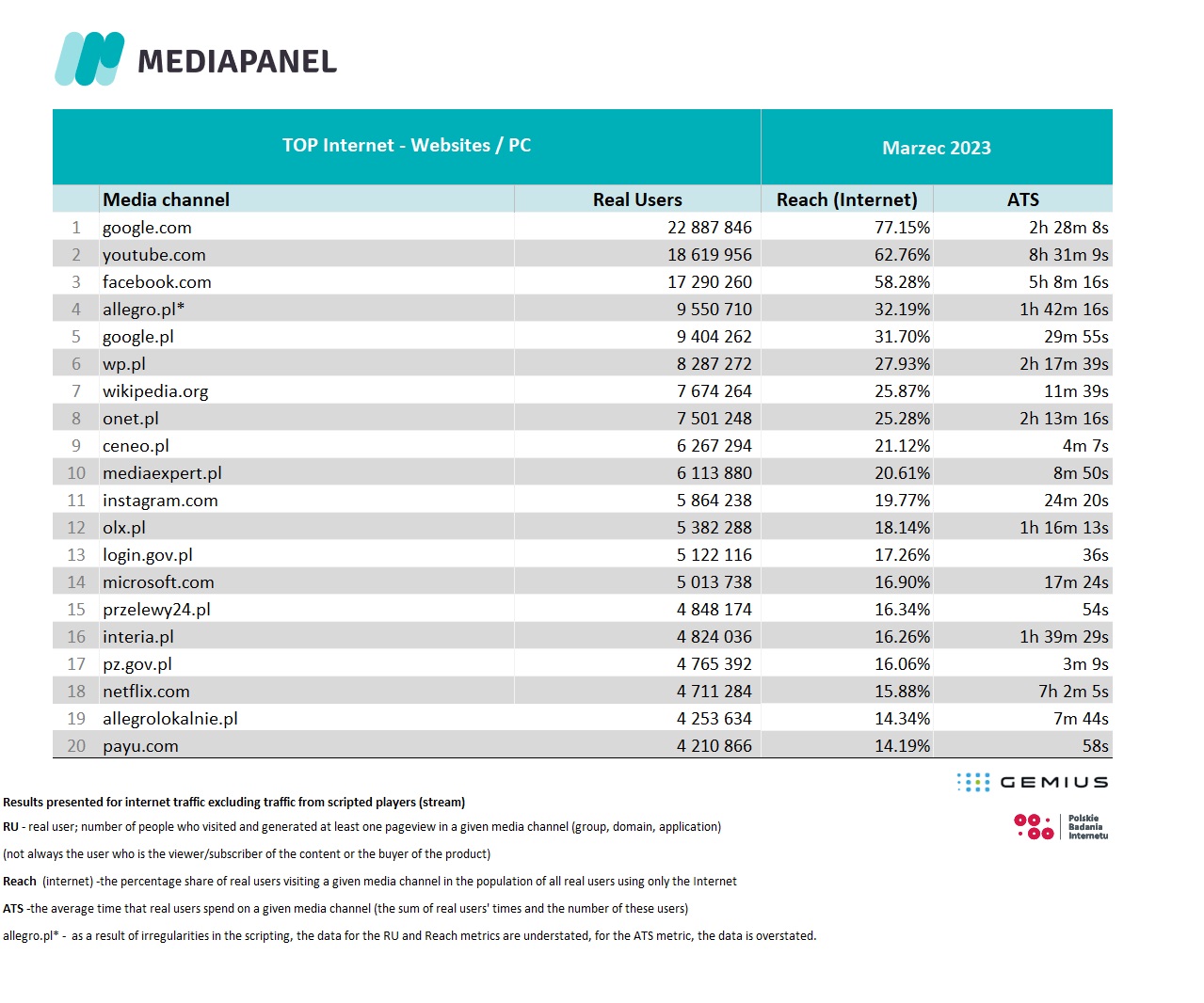 For countries other than Poland, click here and read more about gemiusAudience Research.