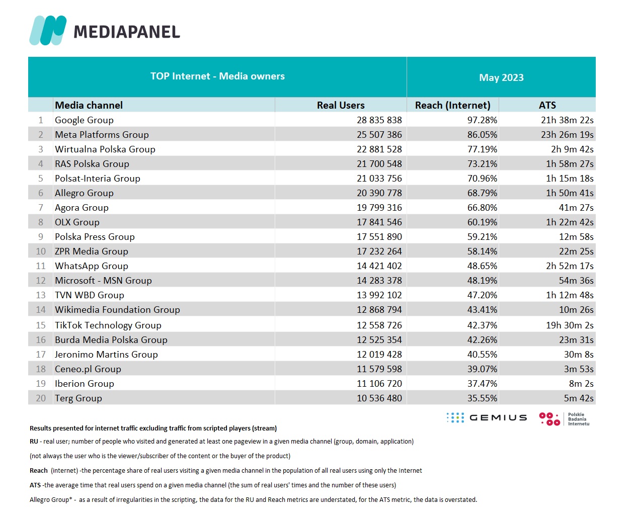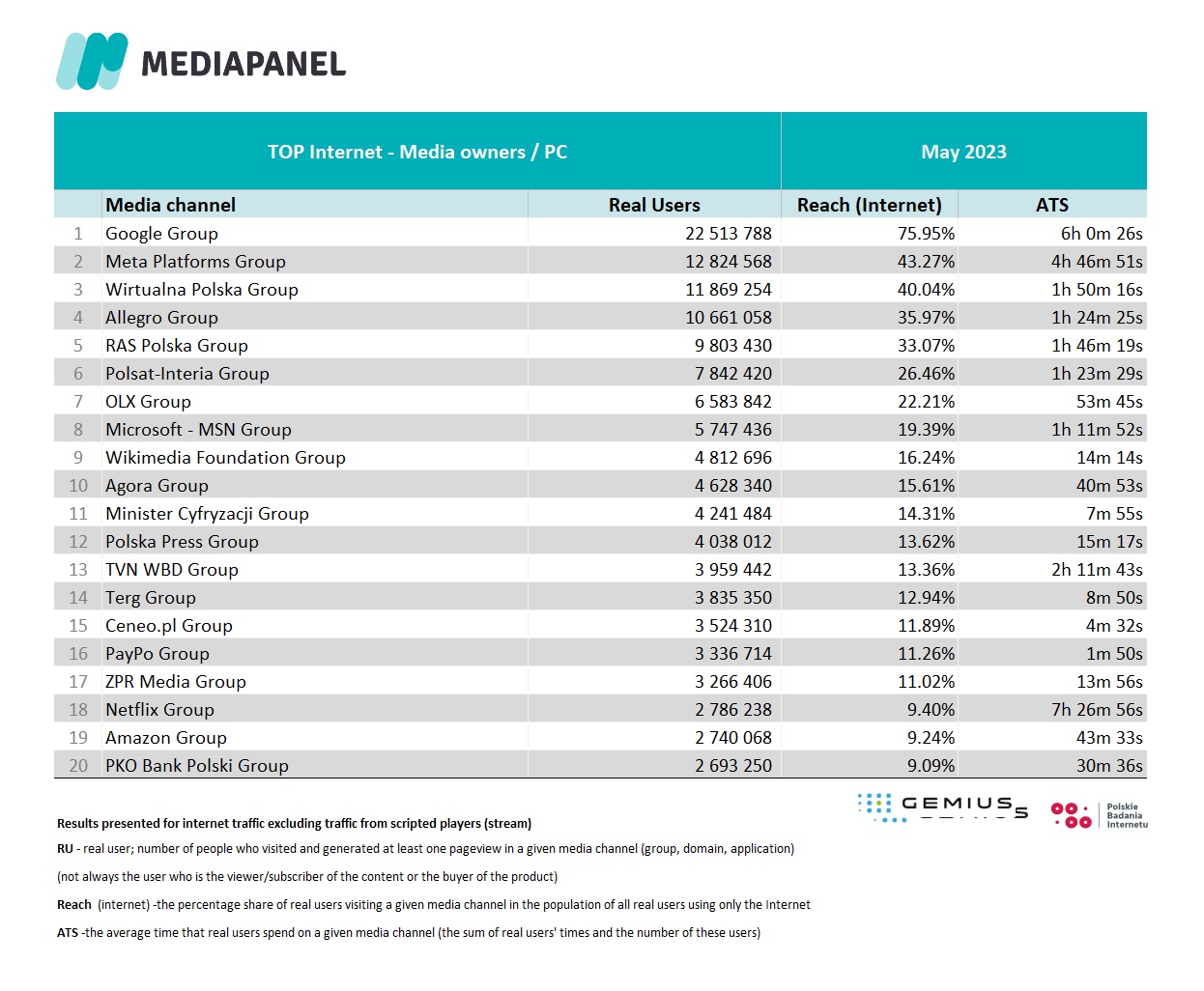For countries other than Poland, click here and read more about gemiusAudience Research.