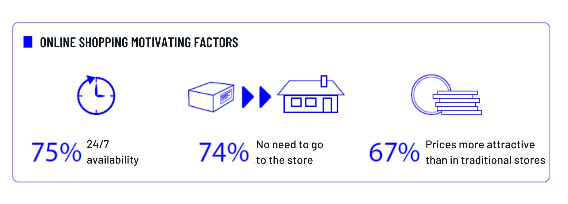 Among the factors that motivate e-consumers to online shopping are, among others 24/7 availability and no need to go to the store - both of these motivators were also mentioned by respondents in the previous wave of the survey. This year, however, the third of the most frequently mentioned factors has changed - the respondents indicated prices that were more attractive than in traditional stores as particularly motivating. The importance of the financial factor is not surprising, especially in the current inflationary environment.