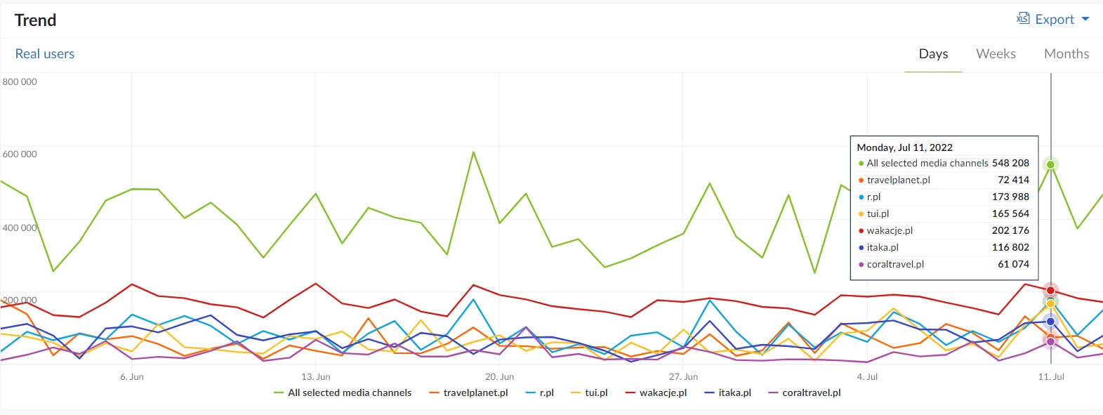 Source: Gemius Mediapanel, Trend – Real Users, June 1 – July 13, 2022; Media Type: ALL, Target Group: ALL, Content type: ALL, Channel type: ALL