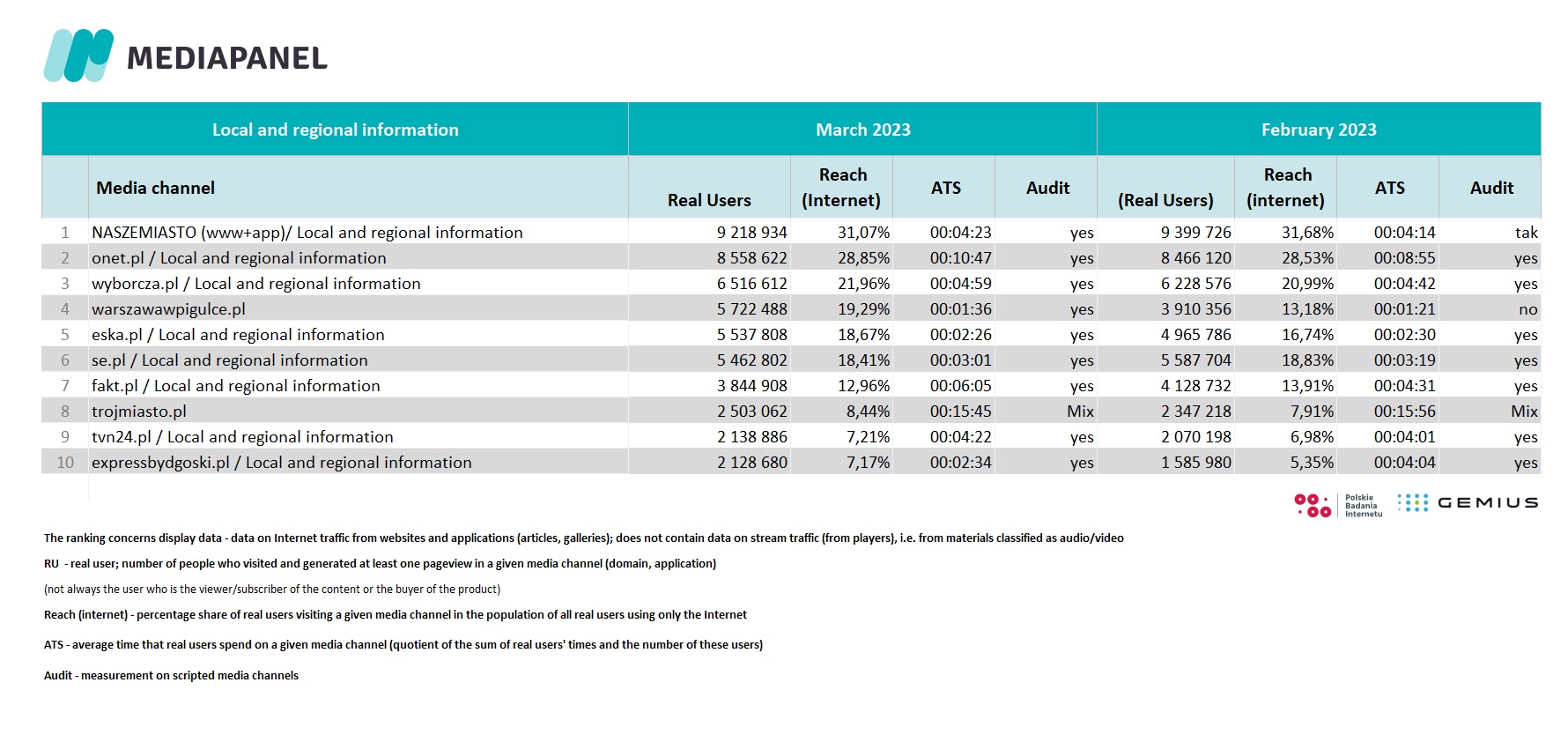 For countries other than Poland, click here and read more about gemiusAudience Research.