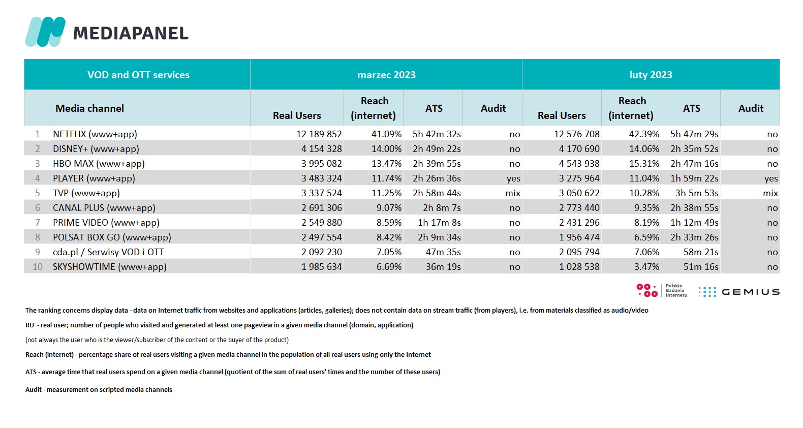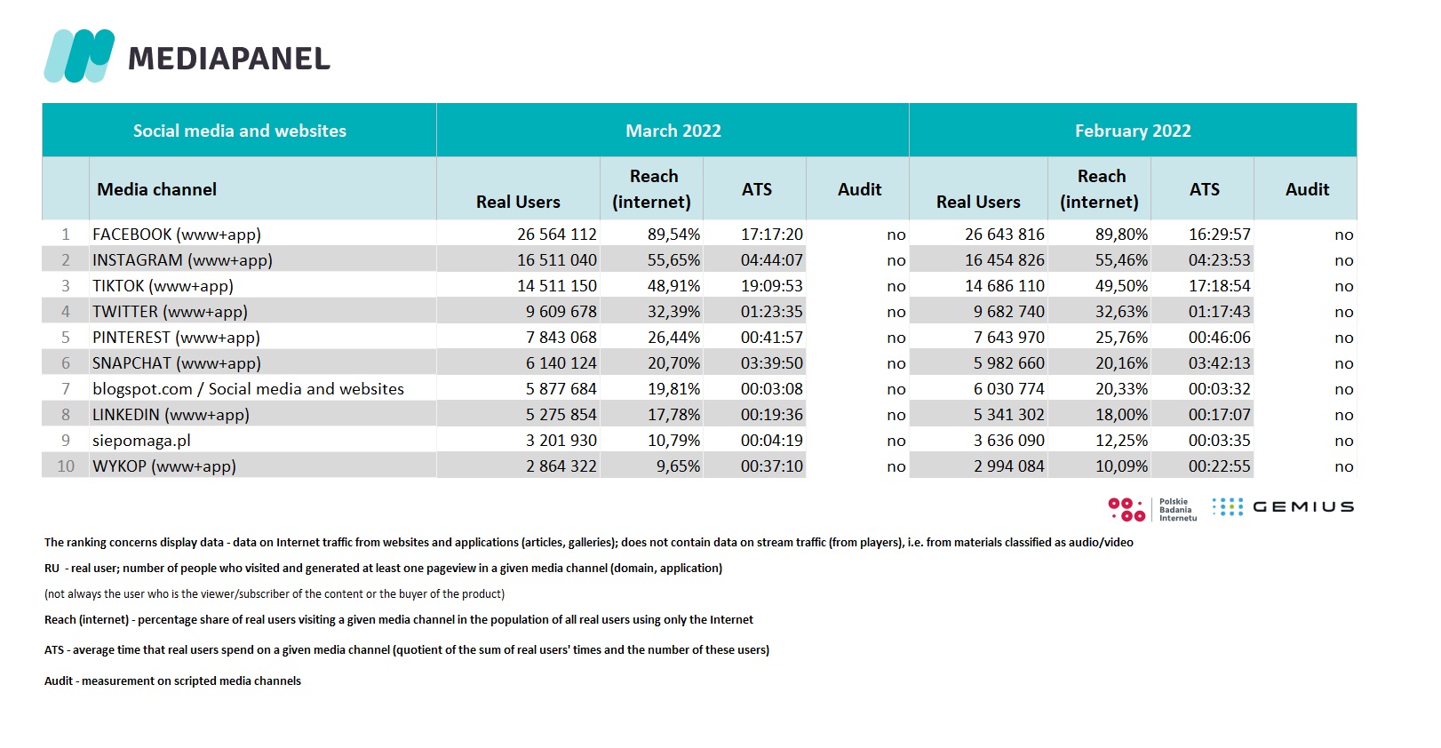 The indicator "users" (real users) means the number of people visiting a given website or application, not the number of active users of platforms / services or accounts registered on them.