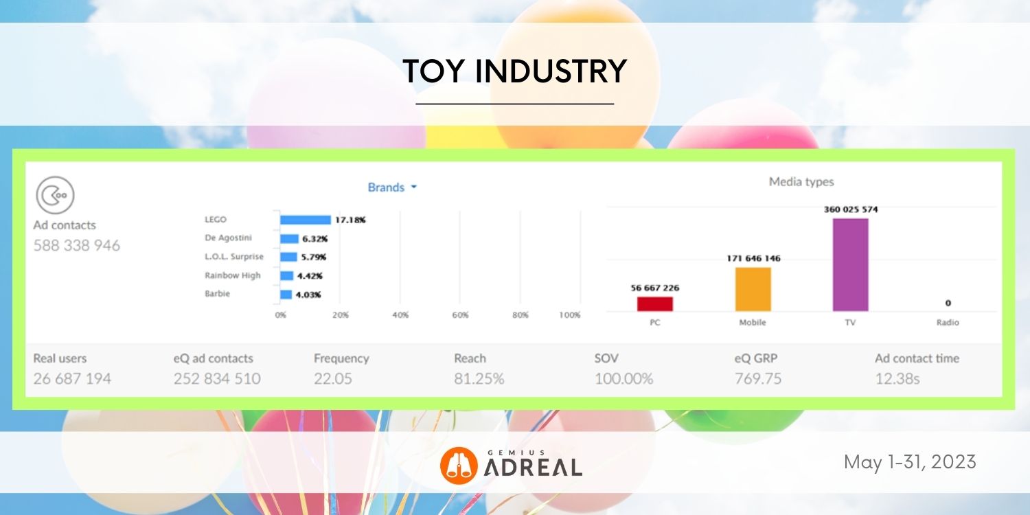 We analyzed the advertising activity of brands from the toy industry in May 2023, we also compared it with the period preceding Christmas.
