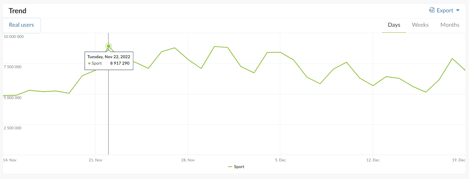 Source: Mediapanel, November 14 – December 20, 2022, Cathegory: Sport, Internet