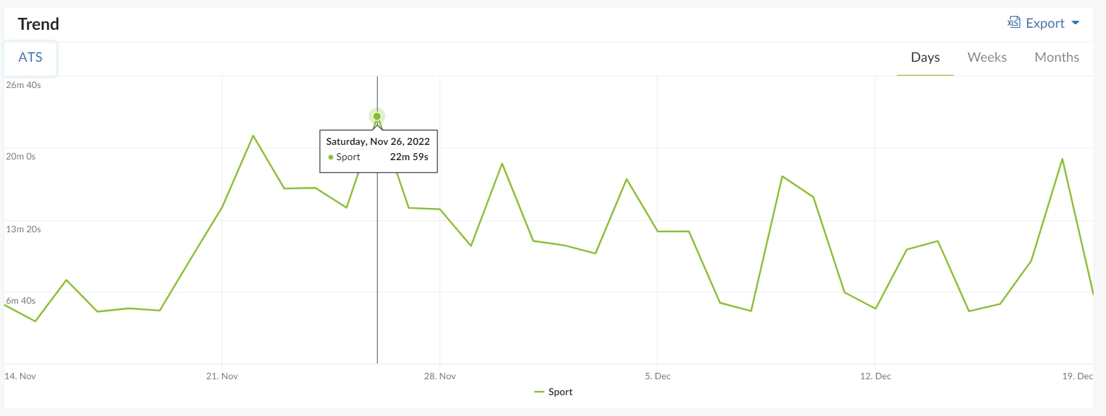 The highest ATS value was recorded on November 26 (Poland's match against Saudi Arabia – 22 minutes 59 seconds), followed by November 22 (21 minutes and 9 seconds), when Poland played against Mexico. On the day of the final, the ATS for pages in the "Sports" category was 19 minutes.